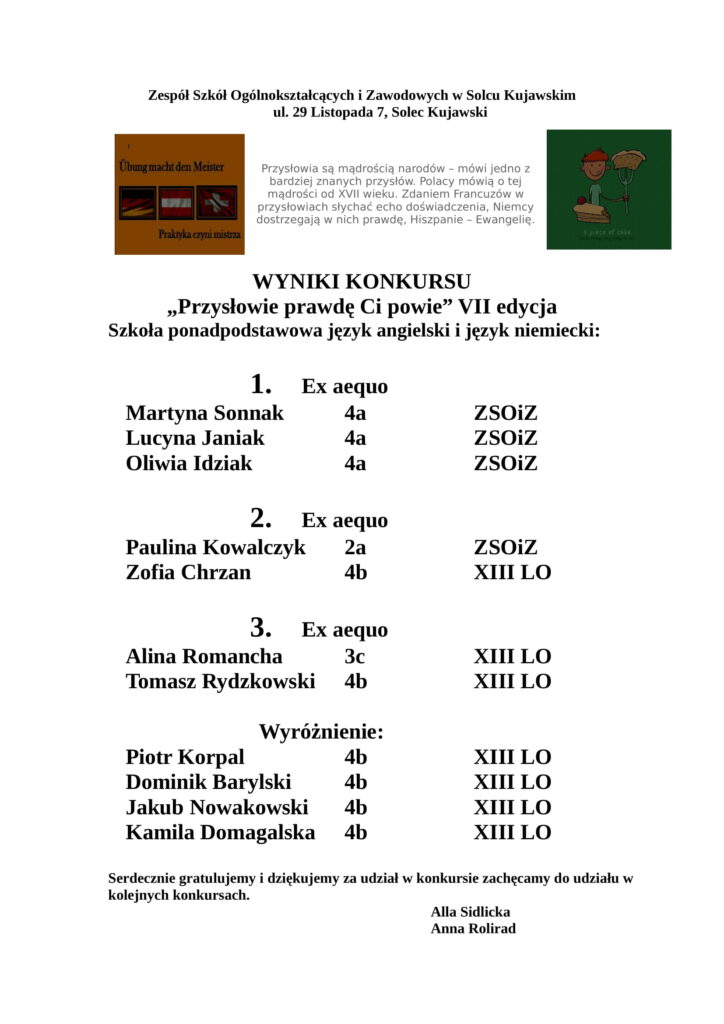 Wyniki Ogólnopolskiego Konkursu Języka Angielskiego 'FORGET ME NOT’